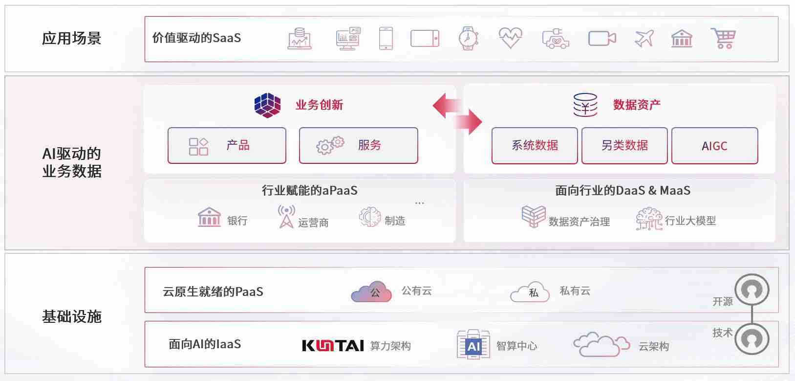 数字时代,,围绕企业数字化转型的关键要素,,ABG集团数码开创性的提出数云融合战略和技术体系框架,,着力在云原生、、数字原生、、、、AI原生和信创产业上架构产品和服务能力,,为处在不同数字化转型阶段的快消零售、、、、汽车、、、、金融、、、医疗、、、政企、、、教育、、运营商等行业客户提供泛在的敏捷IT能力和融合的数据驱动能力,,,构建跨界融合创新的数字业务场景和新业务模式,,,,助力企业级客户建立面向未来的核心能力和竞争优势,,,全面推动社会的数字化、、、、智能化转型升级。。