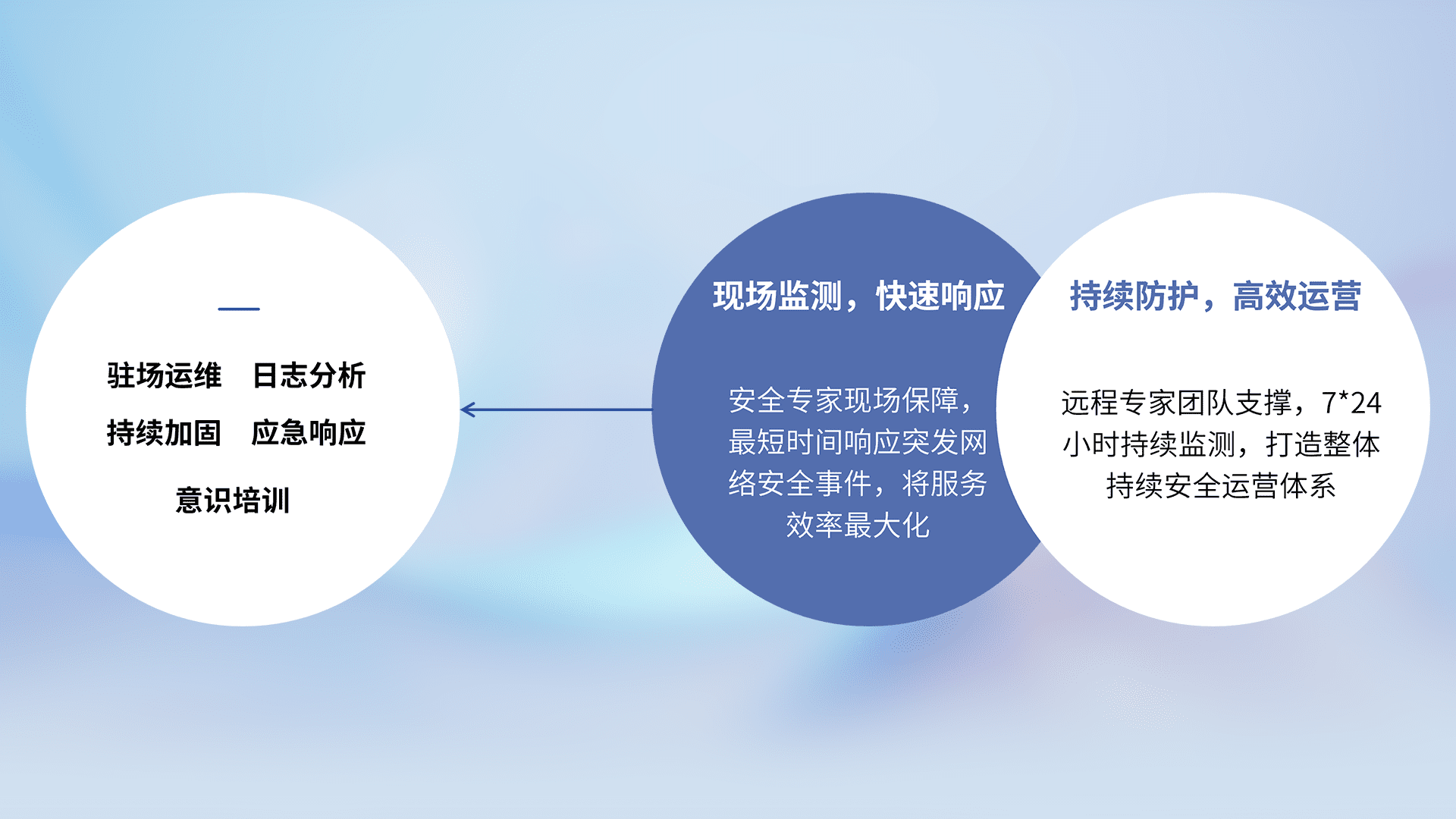 针对客户行业特性,,,提供专属的一站式安全管理服务,,,帮助客户全面感知网络空间威胁,,通过安全专家的线上、、、、线下防护支持,,实现风险闭环,,,,将安全保障常态化,,为客户打造常态化安全运维运营服务。。